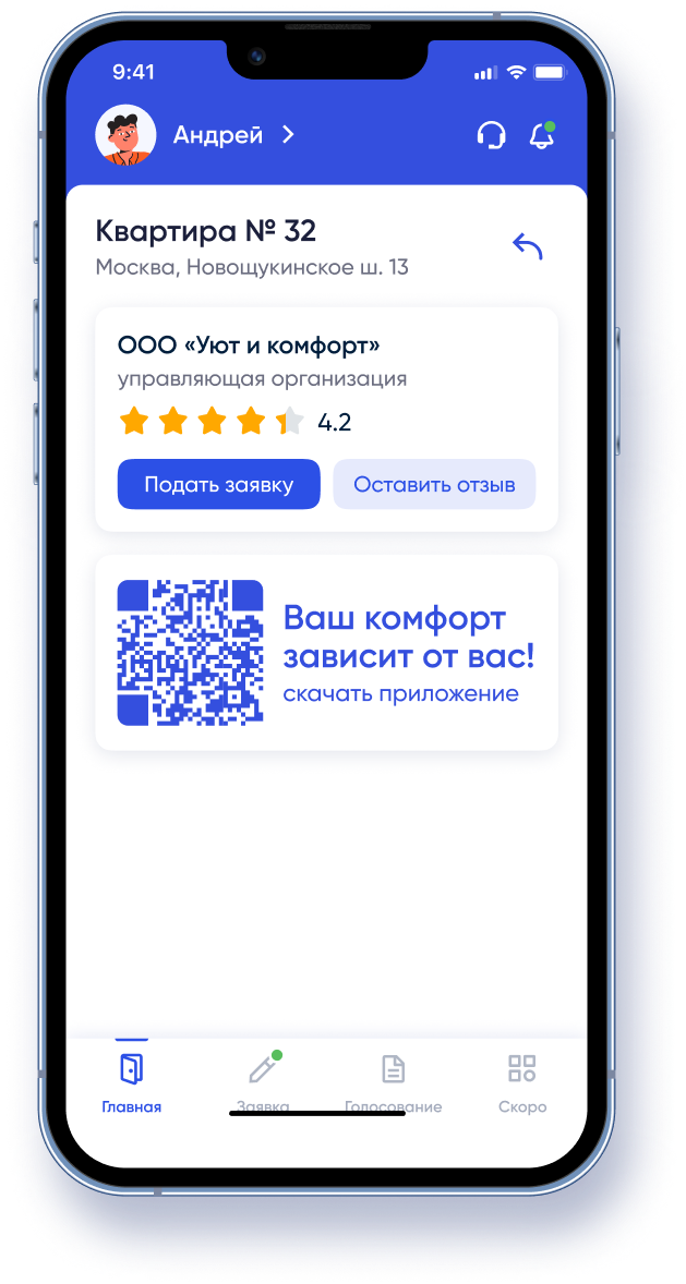 Наше приложение совершенно бесплатное для всех собственников и жителей МКД. Функционал приложения включает в себя как ежемесячные рутинные мероприятия (сдача показаний и оплата ЖКУ), так и другие аспекты, которые делают вашу жизнь в доме комфортнее и безопаснее.